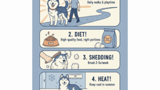 ハスキー犬との生活を夢見る人は多いでしょう。凛々しい顔立ち、美しい被毛、そして人懐っこい性格。シベリアンハスキーは魅力あふれる犬種ですが、実際に一緒に暮らすとなると、いくつか気をつけることがあります。特に食事管理と日常生活における注意点を理...