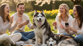遊ぶ ハスキー犬と過ごす春の午後――友人たちと一緒に遊んだ、忘れられない一日