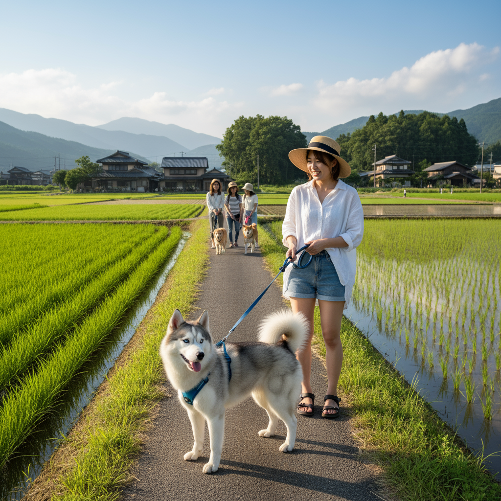 玄関を出ると、清々しい朝の空気が私たちを包み込みます。ハスキー犬は本来、寒冷地で썰매を引くために育てられた犬種です。そのため、涼しい朝の時間帯は彼らにとって最適な運動時間となります。ルナも生き生きとした表情で、いつも以上に元気に歩を進めています。