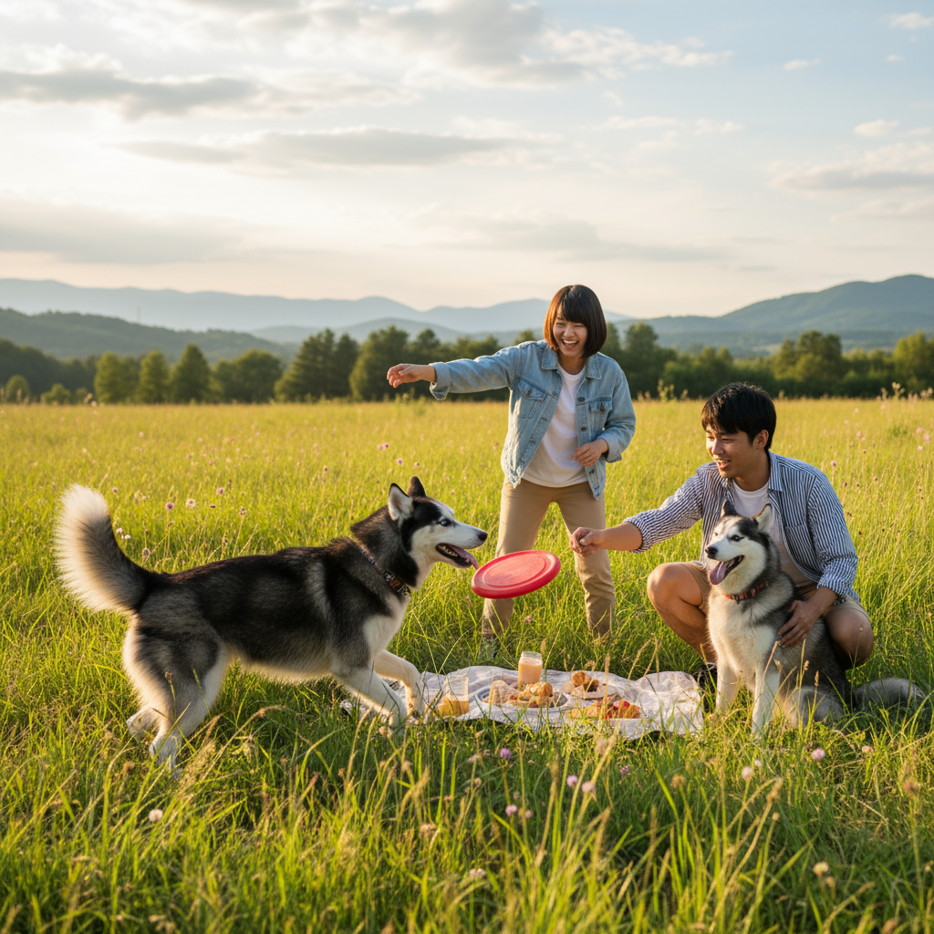 友人たちとハスキー犬のルナと過ごした、かけがえのない一日。この経験は、きっと私の人生の素敵な思い出の一ページとして、いつまでも心に刻まれることでしょう。次に会えるその日まで、ルナの青い瞳と楽しい思い出が、私の心を温かく照らしてくれることと思います。