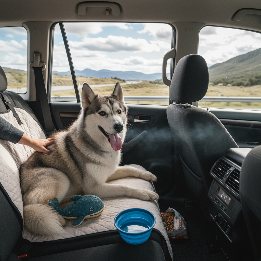 車内環境の整備は最優先事項です。ハスキーは二重被毛を持つ犬種で、温度管理が特に重要です。車内温度は20-22度程度に保つことをお勧めします。エアコンの設定には細心の注意を払い、直接風が当たらないよう調整してください。また、夏場の移動では、遮光カーテンやサンシェードを活用して、直射日光を避けることも大切です。