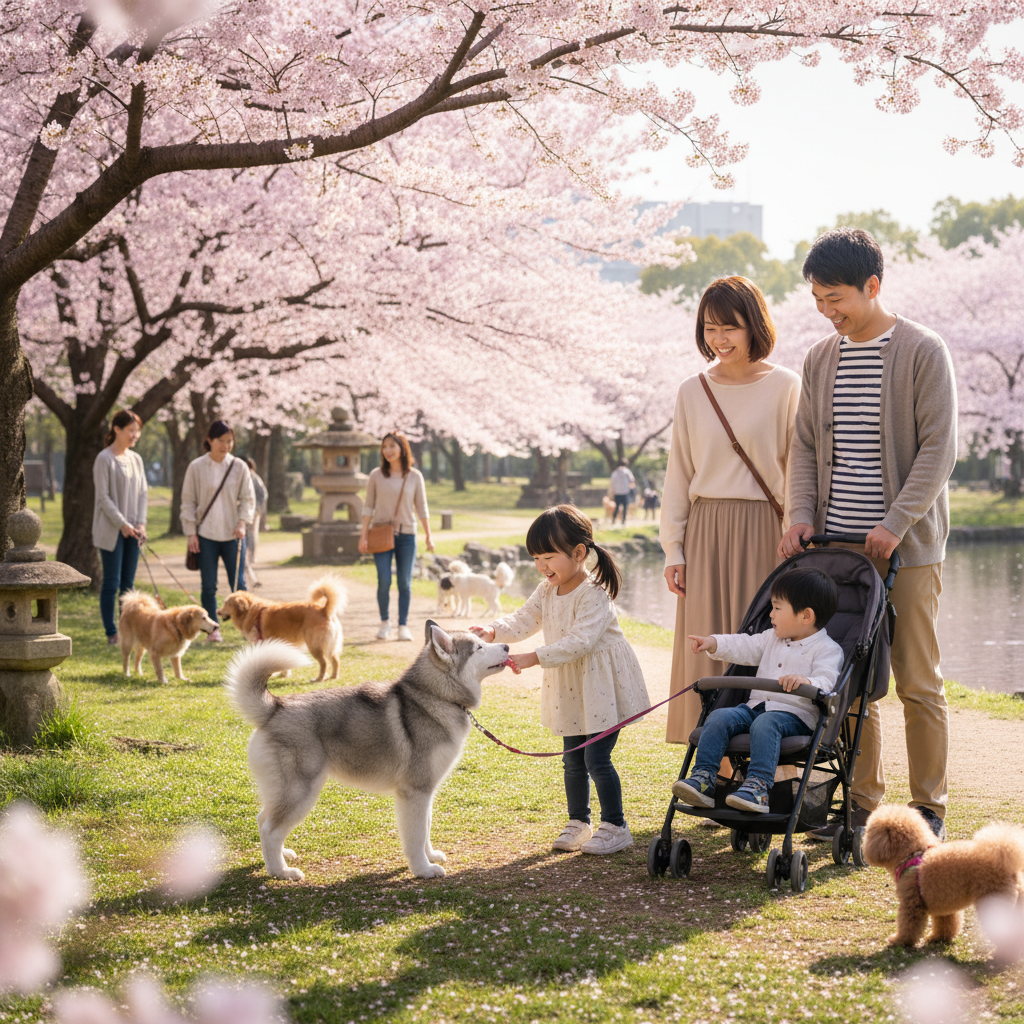 散歩は朝の6時台に行くことが多い。夏場は特に、日が高くなる前じゃないとハスキーには暑すぎるから。早朝の住宅街は静かで、アスファルトもまだひんやりしてて、リクは嬉しそうに小走りする。途中で会う常連の犬仲間がいて、ゴールデンレトリバーのハナちゃんとか、トイプードルのモコとか。リクはどの子にも友好的で、挨拶代わりに鼻をくんくんさせる。飼い主さんたちからも「おとなしいねえ」ってよく言われる。