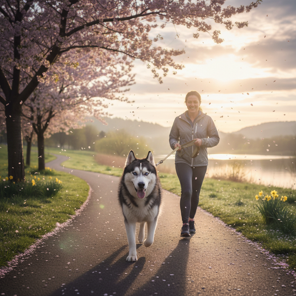 だから今の季節、四月の朝の散歩は最高だ。まだ空気がひんやりしていて、シロの白い息が薄く広がる。足の裏に伝わる土の感触、風に揺れる桜の残り花びら、そして隣を走るシロの体温。ふわりと鼻をくすぐる草のにおい。この時間だけは、すべてがちょうどいい。