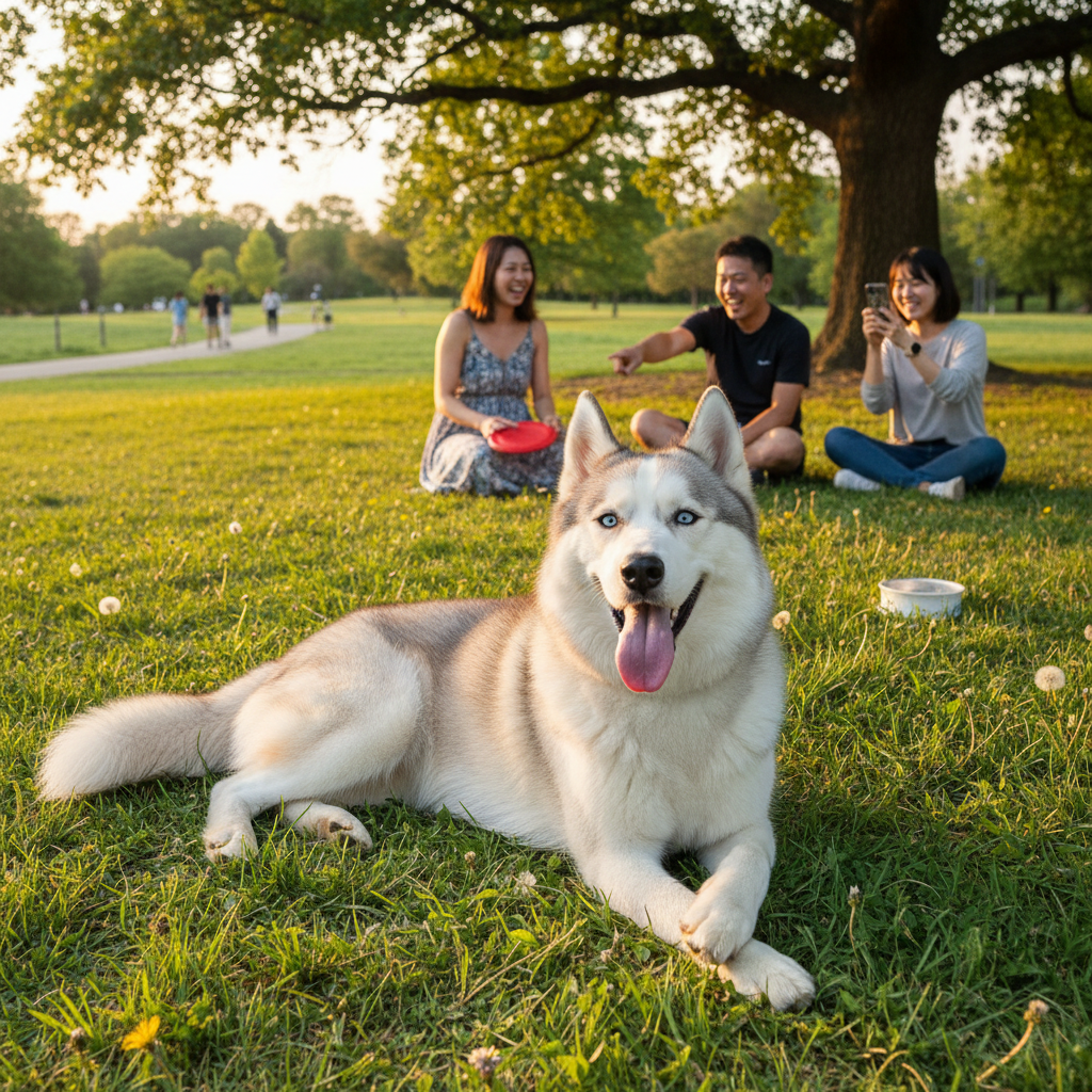 10月の午後3時くらいだったかな、窓から差し込む光が少し斜めになってきてて、ルナの白い毛並みがキラキラ光ってた。ハスキーって本当に写真映えする犬種だと思う。友達の一人がスマホ構えた瞬間、ルナは完璧なドヤ顔でカメラ目線決めてたし。