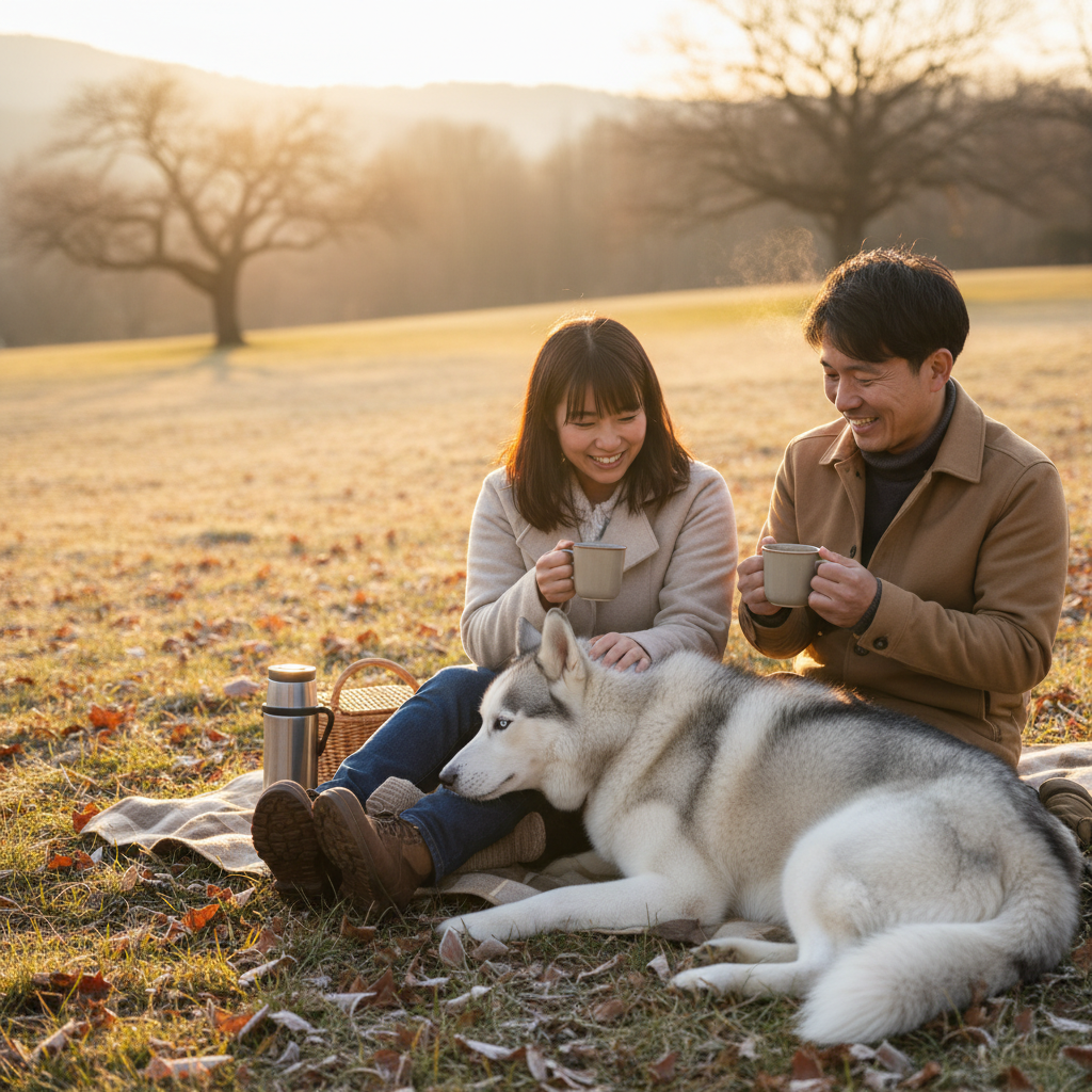 帰り際、友人たちは「また連れてきてもいい?」と尋ねてきた。もちろん、と即答した。ルナもまた、こちらを振り返って尻尾を振っていた。玄関の外に出ると、すでに夕暮れが近づいており、空は薄い藍色に染まり始めていた。彼女たちが去っていく背中を見送りながら、私は今日という日が、きっと記憶の中に長く残るだろうと思った。ハスキー犬がいて、友人たちがいて、ささやかな笑い声があった。それだけで十分だった。