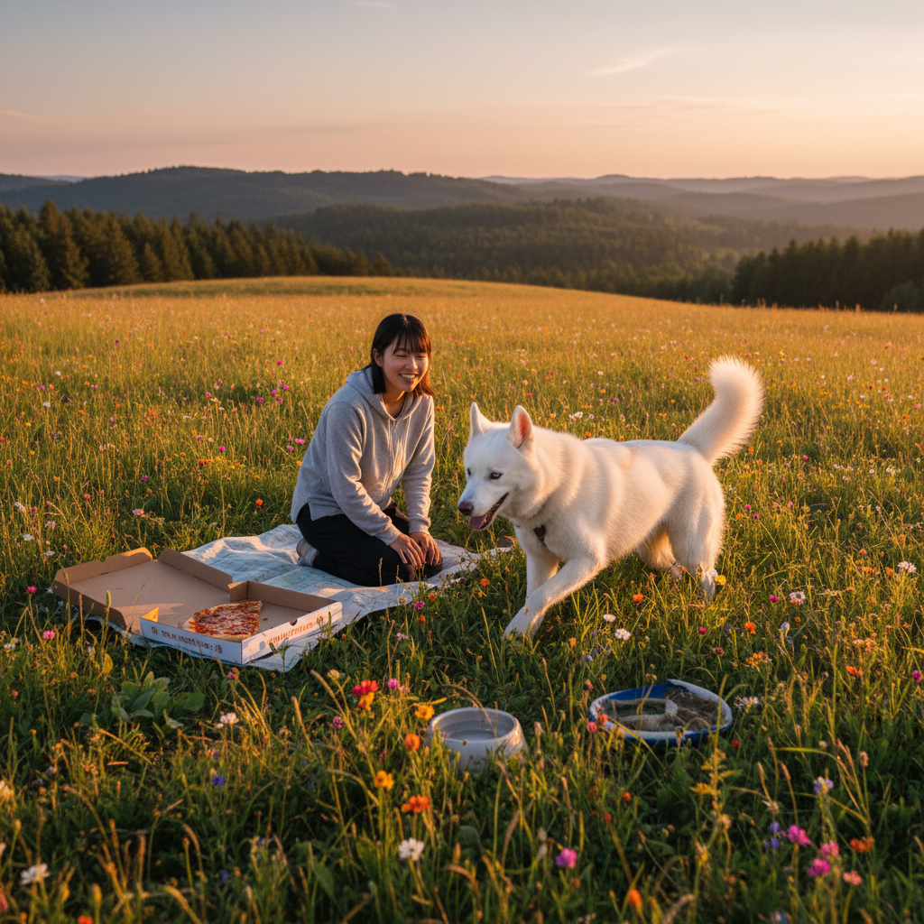 友人たちとハスキー犬と過ごす時間って、思ってたより静かじゃなかった。ルナが動くたびに誰かが反応するし、その反応を見てまた誰かが笑うし、気づいたら午後2時を過ぎてた。お昼ご飯も適当にピザを頼んで、みんなでリビングの床に座って食べた。ルナはピザの匂いに興味津々で、田中が「ダメだよ」って何度も言い聞かせてたけど、諦めずにずっとこっちを見てる。あの視線、ずるいよね。