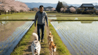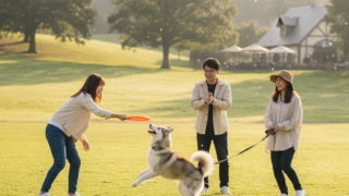 遊ぶ ハスキー犬と過ごす、穏やかな午後の物語